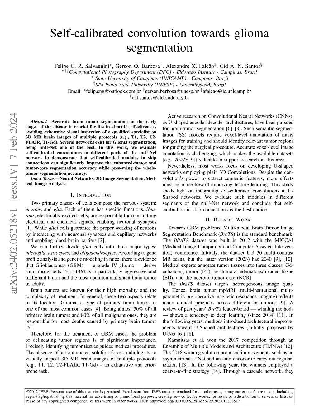 Self-calibrated convolution towards glioma segmentation