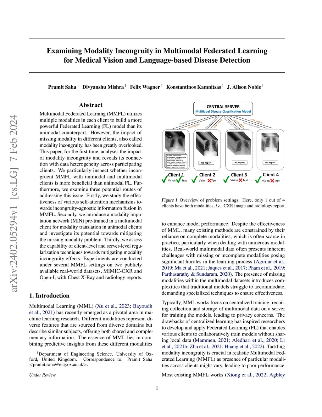 Multimodal Federated Learning (MMFL) utilizes multiple modalities in each client to build a more powerful Federated Learning (FL) model than its unimodal counterpart. However, the impact of missing modality in different clients, also called modality incongruity, has been greatly overlooked. This paper, for the first time, analyses the impact of modality incongruity and reveals its connection with data heterogeneity across participating clients. We particularly inspect whether incongruent MMFL with unimodal and multimodal clients is more beneficial than unimodal FL. Furthermore, we examine three potential routes of addressing this issue. Firstly, we study the effectiveness of various self-attention mechanisms towards incongruity-agnostic information fusion in MMFL. Secondly, we introduce a modality imputation network (MIN) pre-trained in a multimodal client for modality translation in unimodal clients and investigate its potential towards mitigating the missing modality problem. Thirdly, we assess the capability of client-level and server-level regularization techniques towards mitigating modality incongruity effects. Experiments are conducted under several MMFL settings on two publicly available real-world datasets, MIMIC-CXR and Open-I, with Chest X-Ray and radiology reports.
