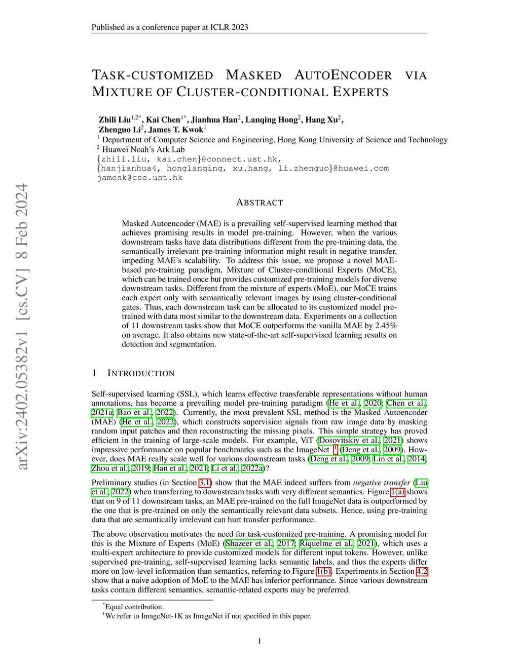 Task-customized Masked AutoEncoder via Mixture of Cluster-conditional