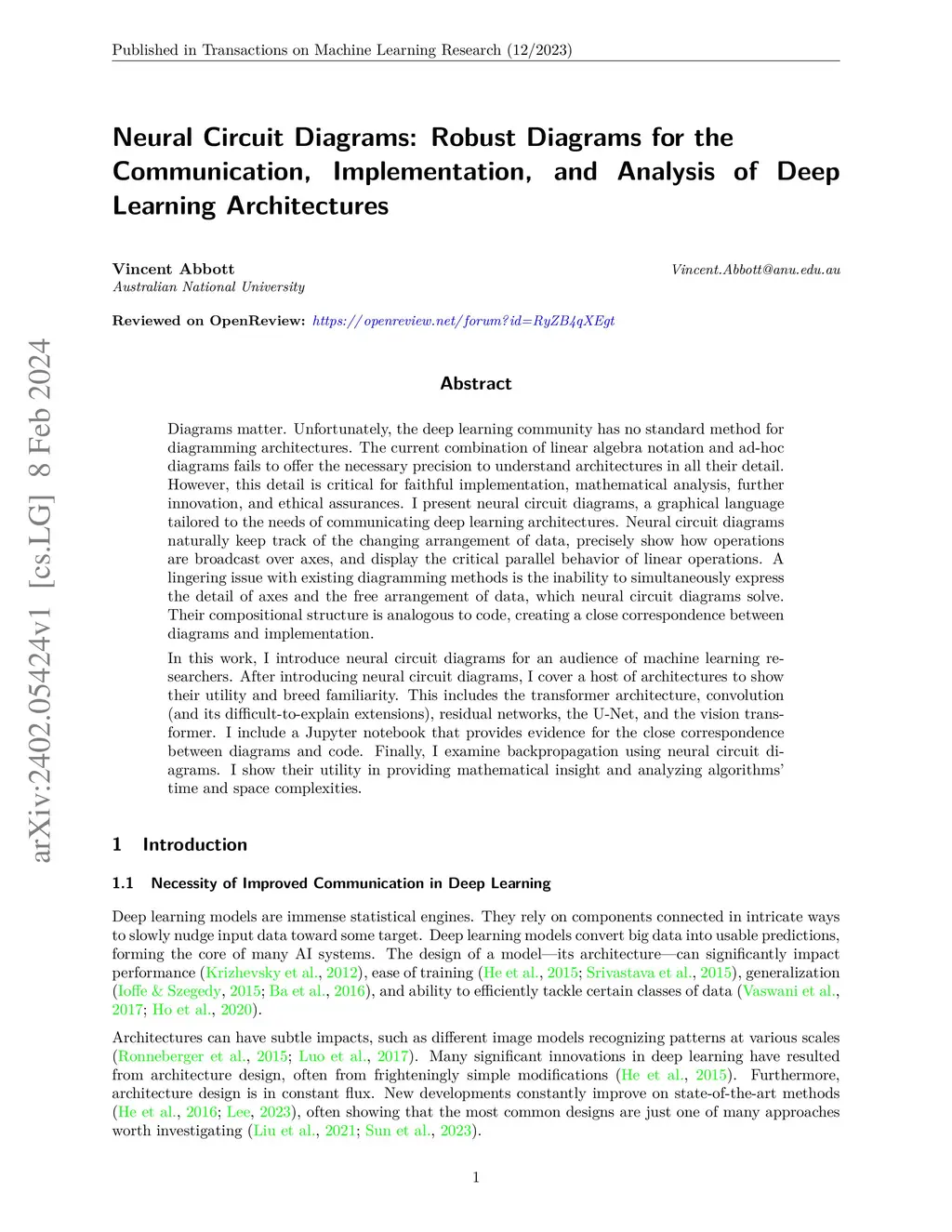 Diagrams matter. Unfortunately, the deep learning community has no standard method for diagramming architectures. The current combination of linear algebra notation and ad-hoc diagrams fails to offer the necessary precision to understand architectures in all their detail. However, this detail is critical for faithful implementation, mathematical analysis, further innovation, and ethical assurances. I present neural circuit diagrams, a graphical language tailored to the needs of communicating deep learning architectures. Neural circuit diagrams naturally keep track of the changing arrangement of data, precisely show how operations are broadcast over axes, and display the critical parallel behavior of linear operations. A lingering issue with existing diagramming methods is the inability to simultaneously express the detail of axes and the free arrangement of data, which neural circuit diagrams solve. Their compositional structure is analogous to code, creating a close correspondence between diagrams and implementation. In this work, I introduce neural circuit diagrams for an audience of machine learning researchers. After introducing neural circuit diagrams, I cover a host of architectures to show their utility and breed familiarity. This includes the transformer architecture, convolution (and its difficult-to-explain extensions), residual networks, the U-Net, and the vision transformer. I include a Jupyter notebook that provides evidence for the close correspondence between diagrams and code. Finally, I examine backpropagation using neural circuit diagrams. I show their utility in providing mathematical insight and analyzing algorithms' time and space complexities.