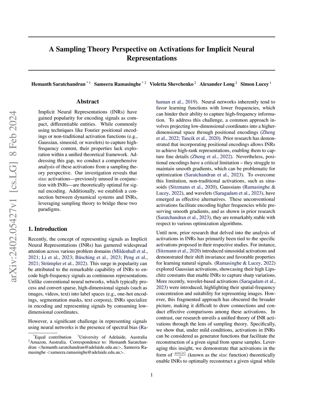 Implicit Neural Representations (INRs) have gained popularity for encoding signals as compact, differentiable entities. While commonly using techniques like Fourier positional encodings or non-traditional activation functions (e.g., Gaussian, sinusoid, or wavelets) to capture high-frequency content, their properties lack exploration within a unified theoretical framework. Addressing this gap, we conduct a comprehensive analysis of these activations from a sampling theory perspective. Our investigation reveals that sinc activations, previously unused in conjunction with INRs, are theoretically optimal for signal encoding. Additionally, we establish a connection between dynamical systems and INRs, leveraging sampling theory to bridge these two paradigms.