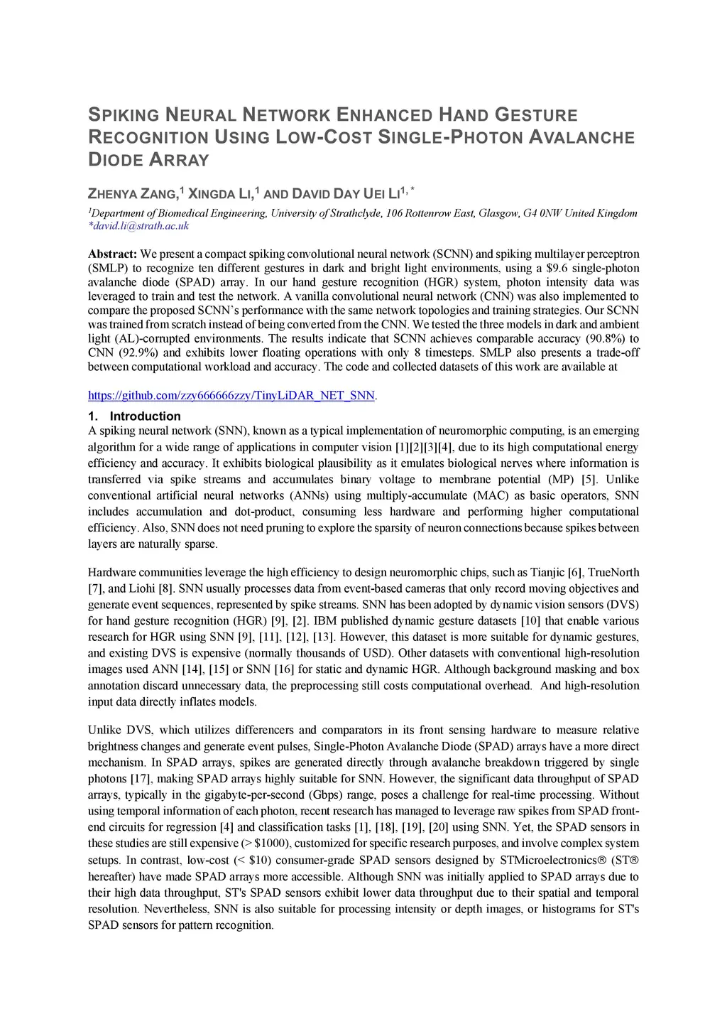 Spiking Neural Network Enhanced Hand Gesture Recognition Using Low-Cost