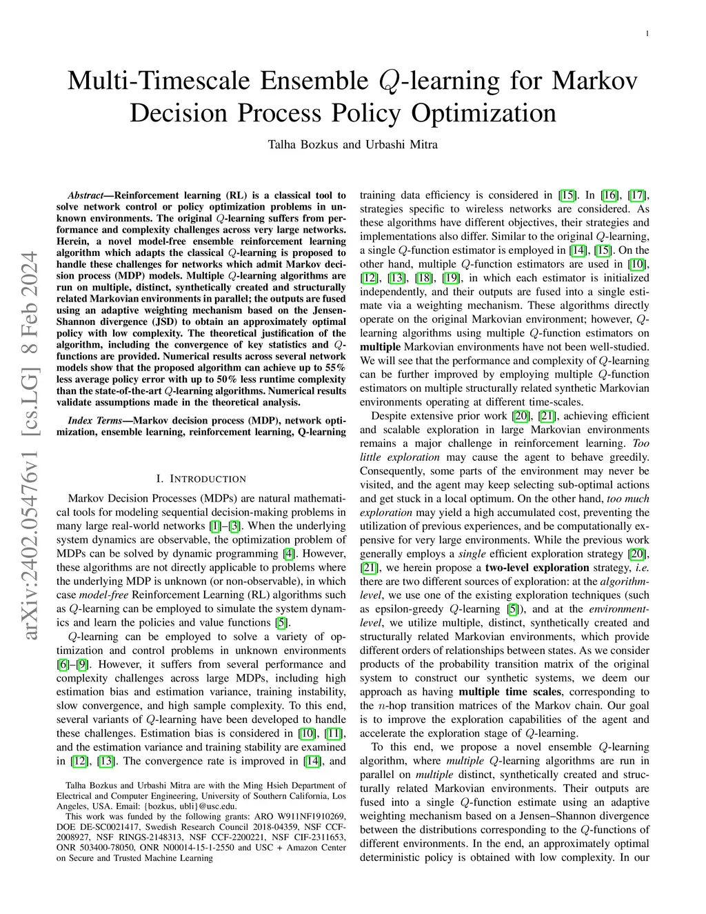 Multi-Timescale Ensemble Q-learning for Markov Decision Process Policy