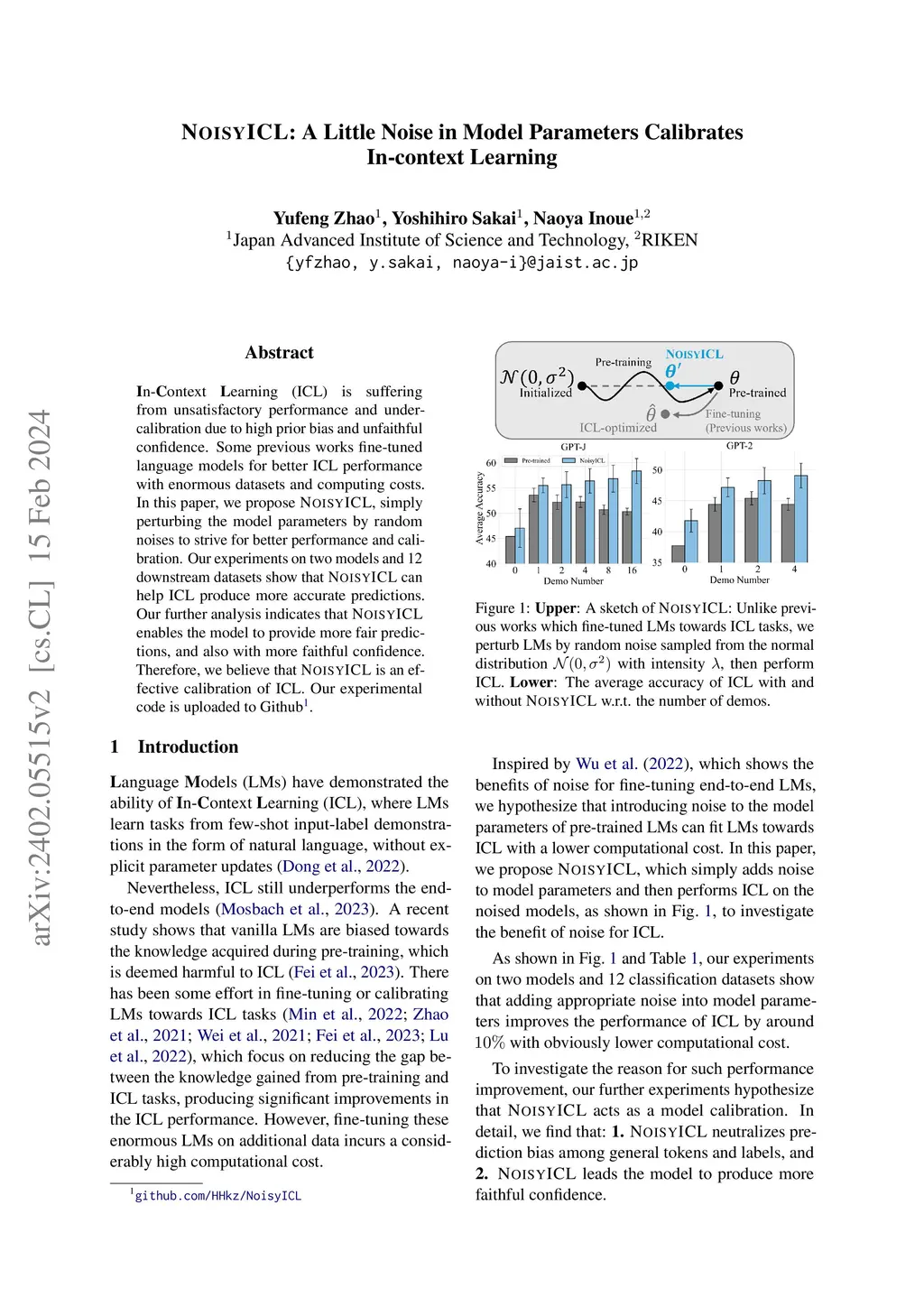 NoisyICL: A Little Noise in Model Parameters Calibrates In-context