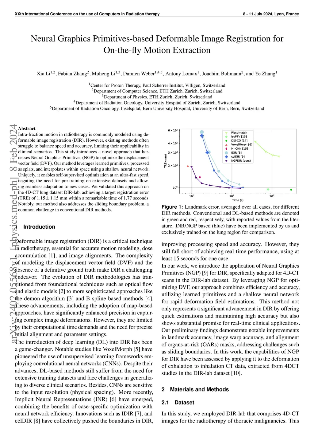 Intra-fraction motion in radiotherapy is commonly modeled using deformable image registration (DIR). However, existing methods often struggle to balance speed and accuracy, limiting their applicability in clinical scenarios. This study introduces a novel approach that harnesses Neural Graphics Primitives (NGP) to optimize the displacement vector field (DVF). Our method leverages learned primitives, processed as splats, and interpolates within space using a shallow neural network. Uniquely, it enables self-supervised optimization at an ultra-fast speed, negating the need for pre-training on extensive datasets and allowing seamless adaptation to new cases. We validated this approach on the 4D-CT lung dataset DIR-lab, achieving a target registration error (TRE) of 1.15\pm1.15 mm within a remarkable time of 1.77 seconds. Notably, our method also addresses the sliding boundary problem, a common challenge in conventional DIR methods.