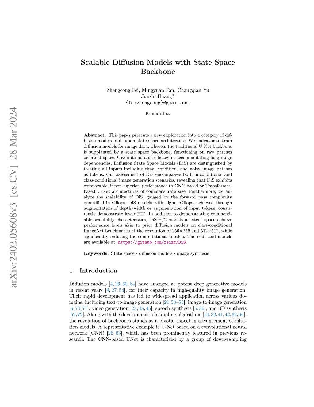 Scalable Diffusion Models with State Space Backbone