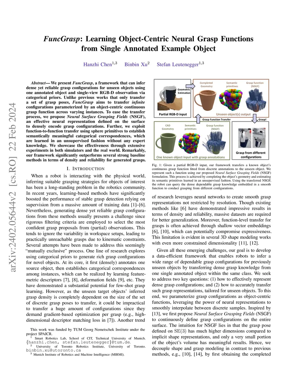 FuncGrasp: Learning Object-Centric Neural Grasp Functions from Single