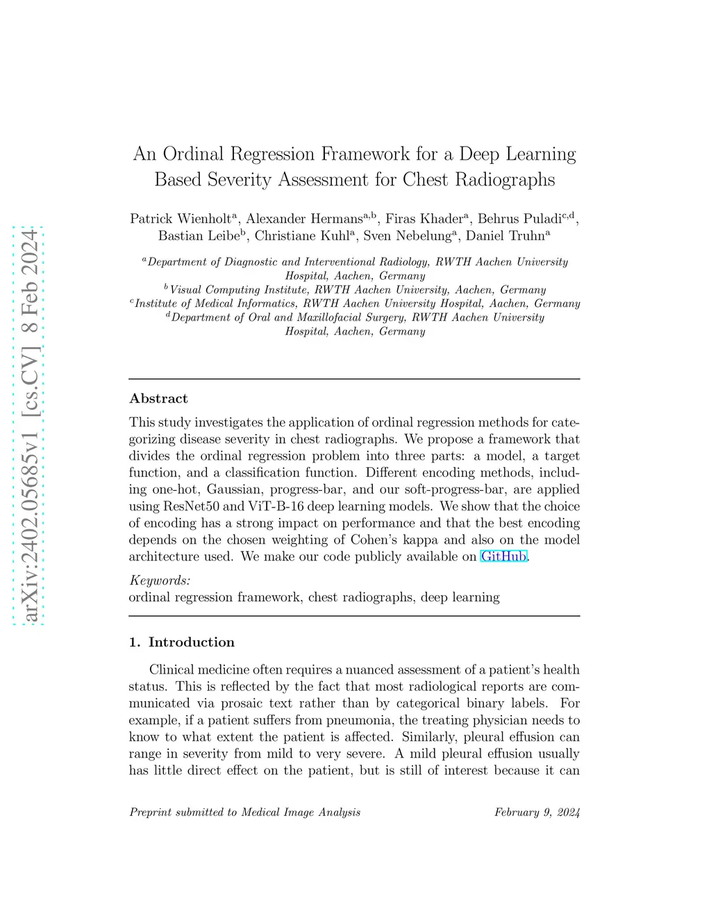 An Ordinal Regression Framework for a Deep Learning Based Severity