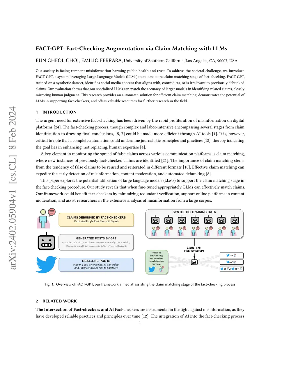 FACT-GPT: Fact-Checking Augmentation via Claim Matching with LLMs