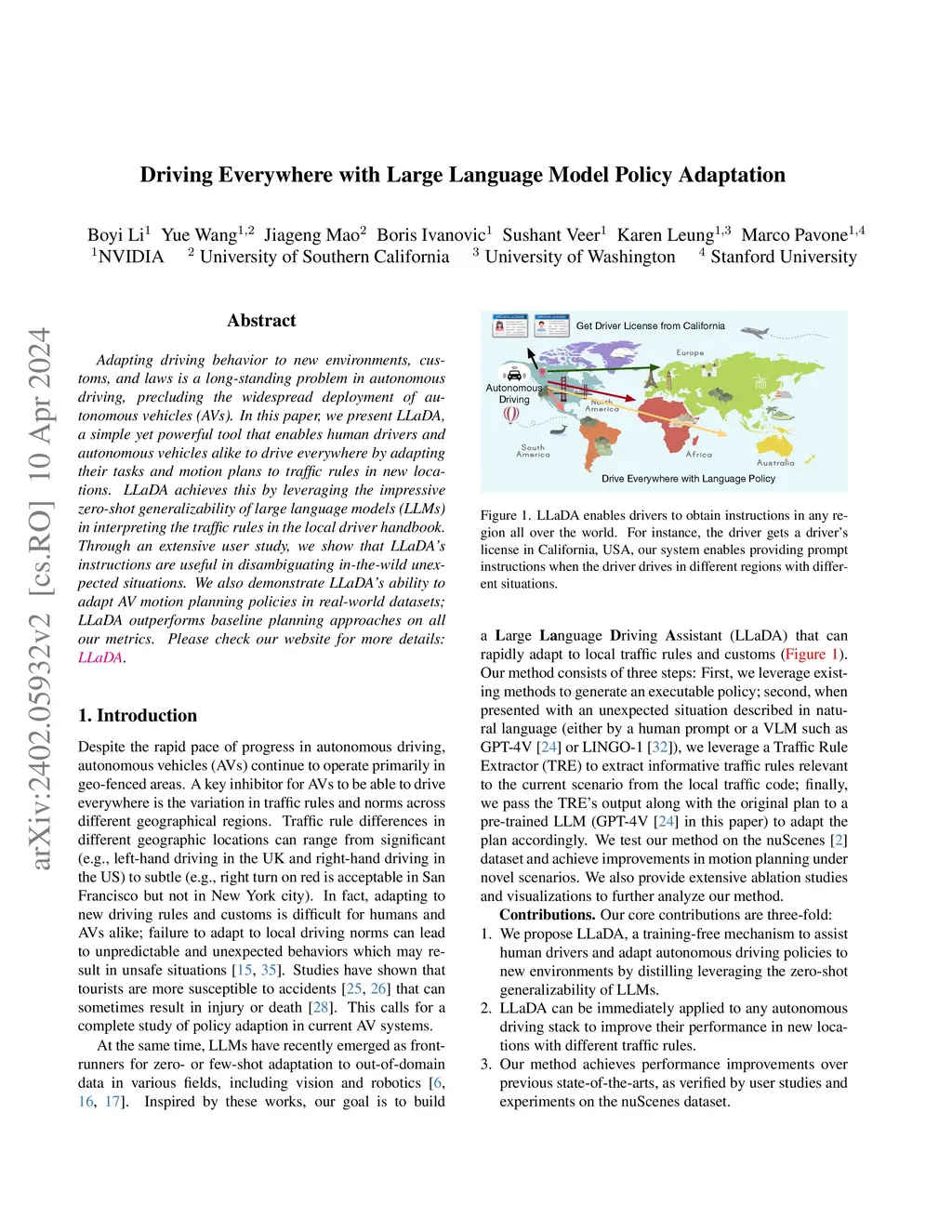 Adapting driving behavior to new environments, customs, and laws is a long-standing problem in autonomous driving, precluding the widespread deployment of autonomous vehicles (AVs). In this paper, we present LLaDA, a simple yet powerful tool that enables human drivers and autonomous vehicles alike to drive everywhere by adapting their tasks and motion plans to traffic rules in new locations. LLaDA achieves this by leveraging the impressive zero-shot generalizability of large language models (LLMs) in interpreting the traffic rules in the local driver handbook. Through an extensive user study, we show that LLaDA's instructions are useful in disambiguating in-the-wild unexpected situations. We also demonstrate LLaDA's ability to adapt AV motion planning policies in real-world datasets; LLaDA outperforms baseline planning approaches on all our metrics. Please check our website for more details: https://boyiliee.github.io/llada.