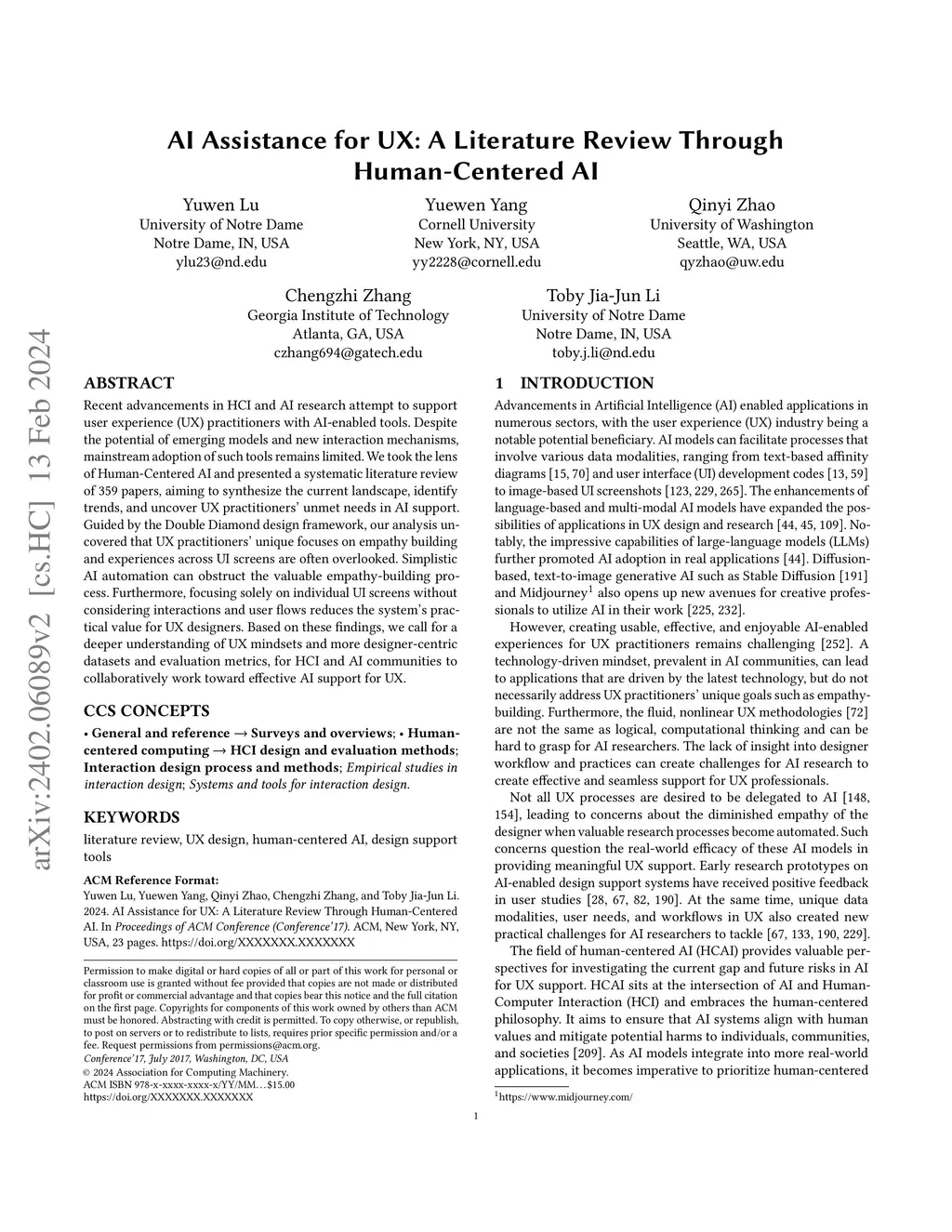 AI Assistance for UX: A Literature Review Through Human-Centered AI