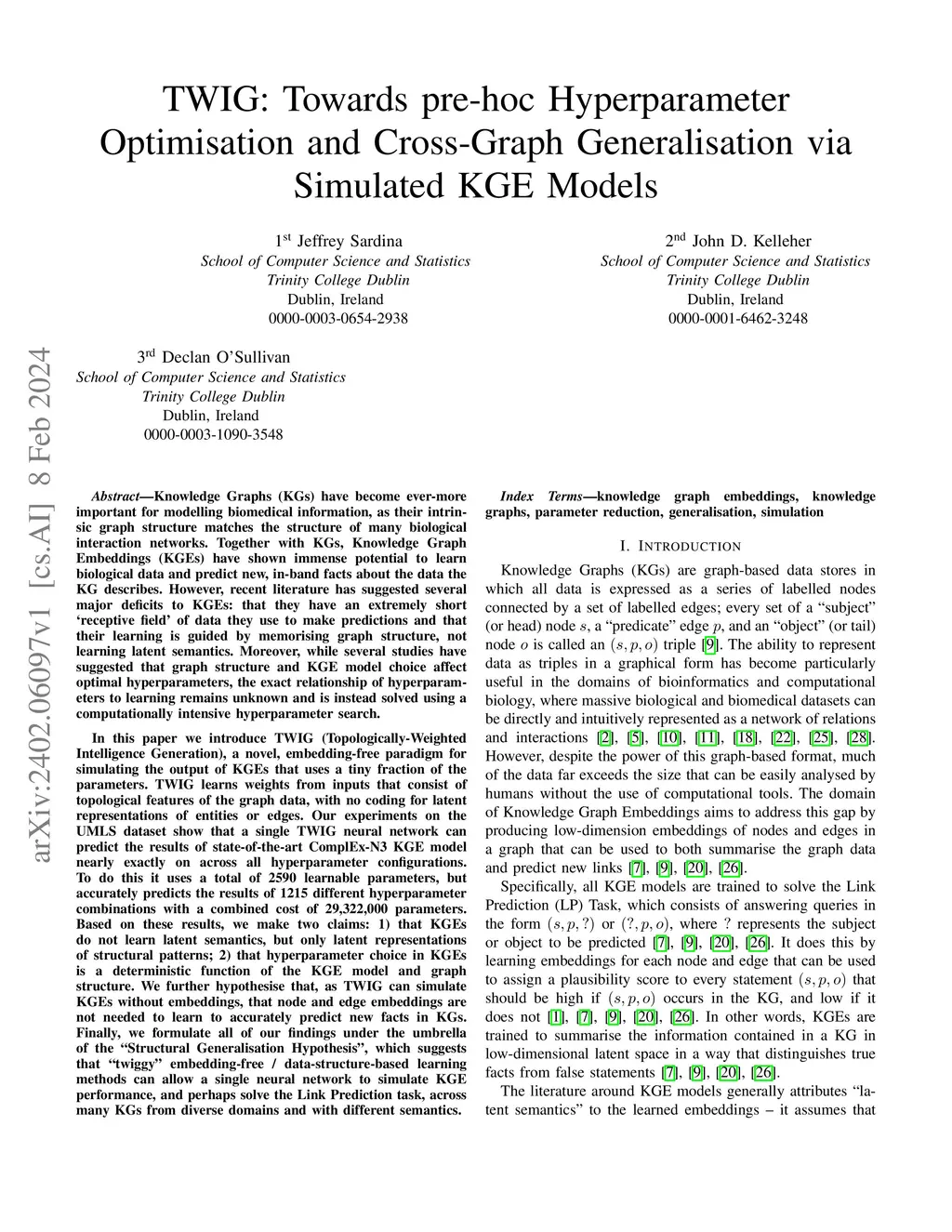 TWIG: Towards pre-hoc Hyperparameter Optimisation and Cross-Graph
