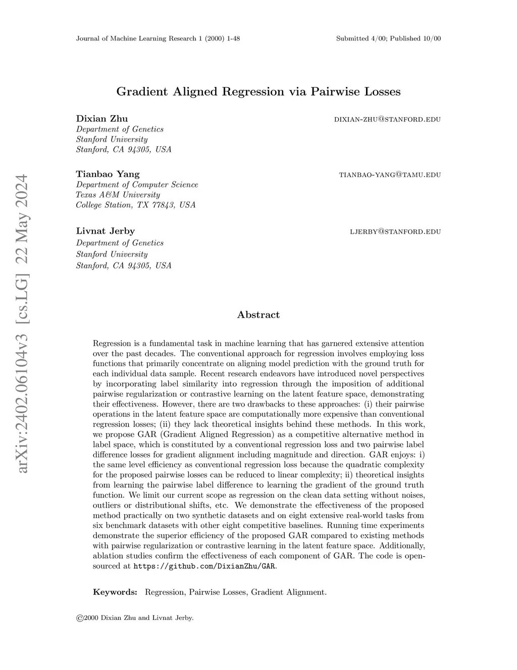 Regression is a fundamental task in machine learning that has garnered extensive attention over the past decades. The conventional approach for regression involves employing loss functions that primarily concentrate on aligning model prediction with the ground truth for each individual data sample. Recent research endeavors have introduced novel perspectives by incorporating label similarity to regression via imposing extra pairwise regularization on the latent feature space and demonstrated the effectiveness. However, there are two drawbacks for those approaches: i) their pairwise operation in latent feature space is computationally more expensive than conventional regression losses; ii) it lacks of theoretical justifications behind such regularization. In this work, we propose GAR (Gradient Aligned Regression) as a competitive alternative method in label space, which is constituted by a conventional regression loss and two pairwise label difference losses for gradient alignment including magnitude and direction. GAR enjoys: i) the same level efficiency as conventional regression loss because the quadratic complexity for the proposed pairwise losses can be reduced to linear complexity; ii) theoretical insights from learning the pairwise label difference to learning the gradient of the ground truth function. We limit our current scope as regression on the clean data setting without noises, outliers or distributional shifts, etc. We demonstrate the effectiveness of the proposed method practically on two synthetic datasets and on eight extensive real-world tasks from six benchmark datasets with other eight competitive baselines. Running time experiments demonstrate the superior efficiency of the proposed GAR over existing methods with pairwise regularization in latent feature space and ablation studies demonstrate the effectiveness of each component for GAR.
