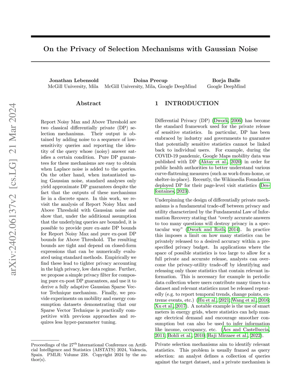On the Privacy of Selection Mechanisms with Gaussian Noise