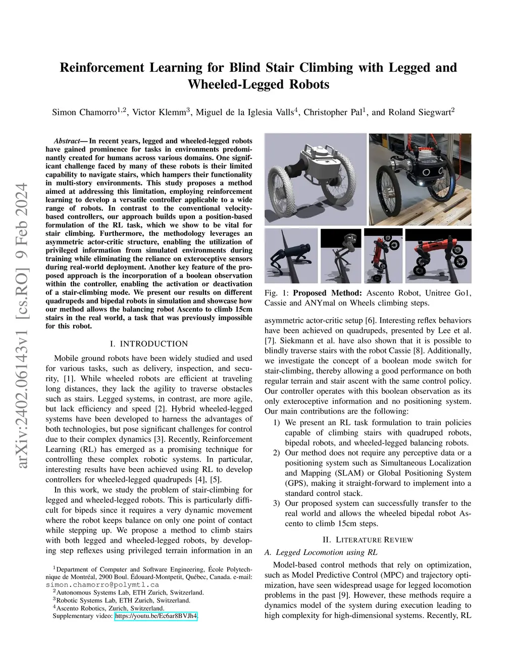 In recent years, legged and wheeled-legged robots have gained prominence for tasks in environments predominantly created for humans across various domains. One significant challenge faced by many of these robots is their limited capability to navigate stairs, which hampers their functionality in multi-story environments. This study proposes a method aimed at addressing this limitation, employing reinforcement learning to develop a versatile controller applicable to a wide range of robots. In contrast to the conventional velocity-based controllers, our approach builds upon a position-based formulation of the RL task, which we show to be vital for stair climbing. Furthermore, the methodology leverages an asymmetric actor-critic structure, enabling the utilization of privileged information from simulated environments during training while eliminating the reliance on exteroceptive sensors during real-world deployment. Another key feature of the proposed approach is the incorporation of a boolean observation within the controller, enabling the activation or deactivation of a stair-climbing mode. We present our results on different quadrupeds and bipedal robots in simulation and showcase how our method allows the balancing robot Ascento to climb 15cm stairs in the real world, a task that was previously impossible for this robot.