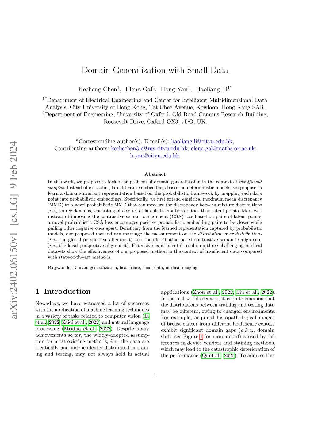 Domain Generalization with Small Data