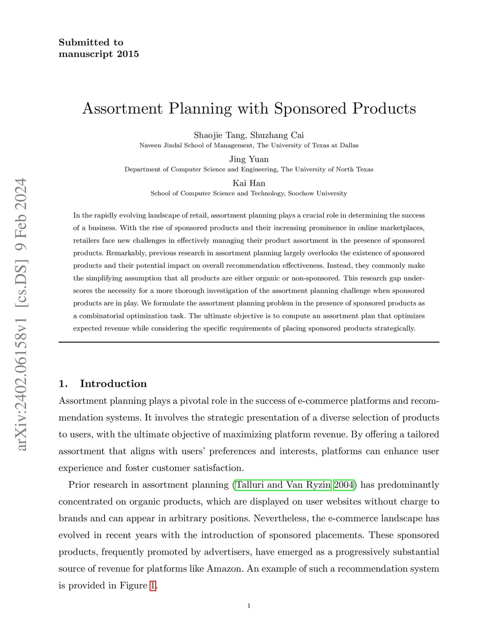 In the rapidly evolving landscape of retail, assortment planning plays a crucial role in determining the success of a business. With the rise of sponsored products and their increasing prominence in online marketplaces, retailers face new challenges in effectively managing their product assortment in the presence of sponsored products. Remarkably, previous research in assortment planning largely overlooks the existence of sponsored products and their potential impact on overall recommendation effectiveness. Instead, they commonly make the simplifying assumption that all products are either organic or non-sponsored. This research gap underscores the necessity for a more thorough investigation of the assortment planning challenge when sponsored products are in play. We formulate the assortment planning problem in the presence of sponsored products as a combinatorial optimization task. The ultimate objective is to compute an assortment plan that optimizes expected revenue while considering the specific requirements of placing sponsored products strategically.