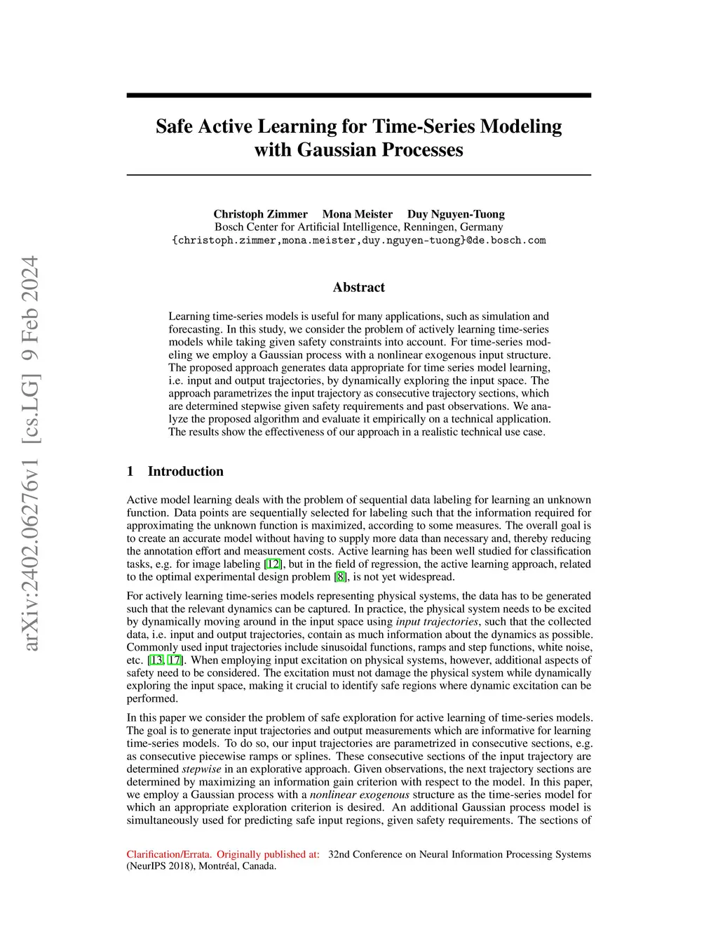 Safe Active Learning for Time-Series Modeling with Gaussian Processes