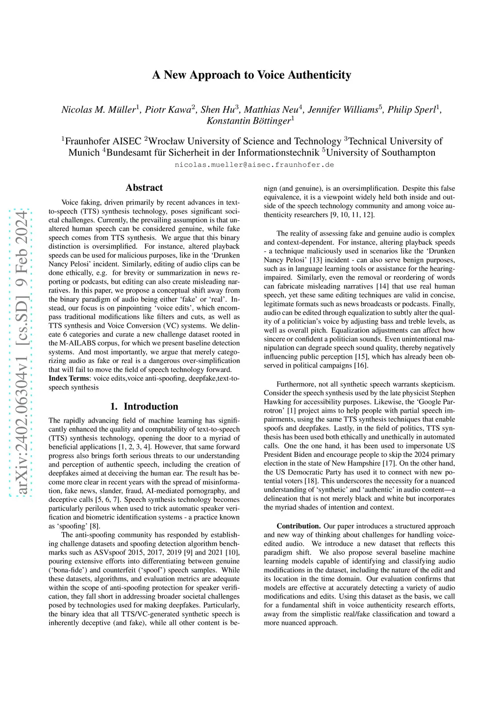 A New Approach to Voice Authenticity