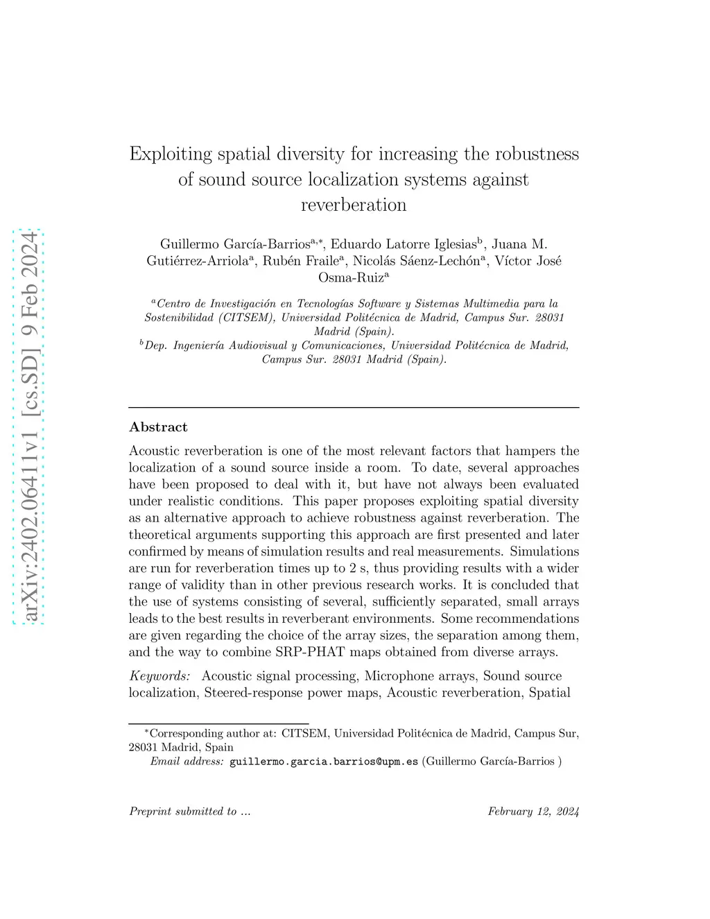 Acoustic reverberation is one of the most relevant factors that hampers the localization of a sound source inside a room. To date, several approaches have been proposed to deal with it, but have not always been evaluated under realistic conditions. This paper proposes exploiting spatial diversity as an alternative approach to achieve robustness against reverberation. The theoretical arguments supporting this approach are first presented and later confirmed by means of simulation results and real measurements. Simulations are run for reverberation times up to 2 s, thus providing results with a wider range of validity than in other previous research works. It is concluded that the use of systems consisting of several, sufficiently separated, small arrays leads to the best results in reverberant environments. Some recommendations are given regarding the choice of the array sizes, the separation among them, and the way to combine SRP-PHAT maps obtained from diverse arrays.