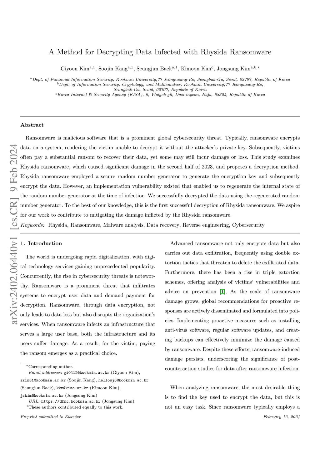 A Method for Decrypting Data Infected with Rhysida Ransomware