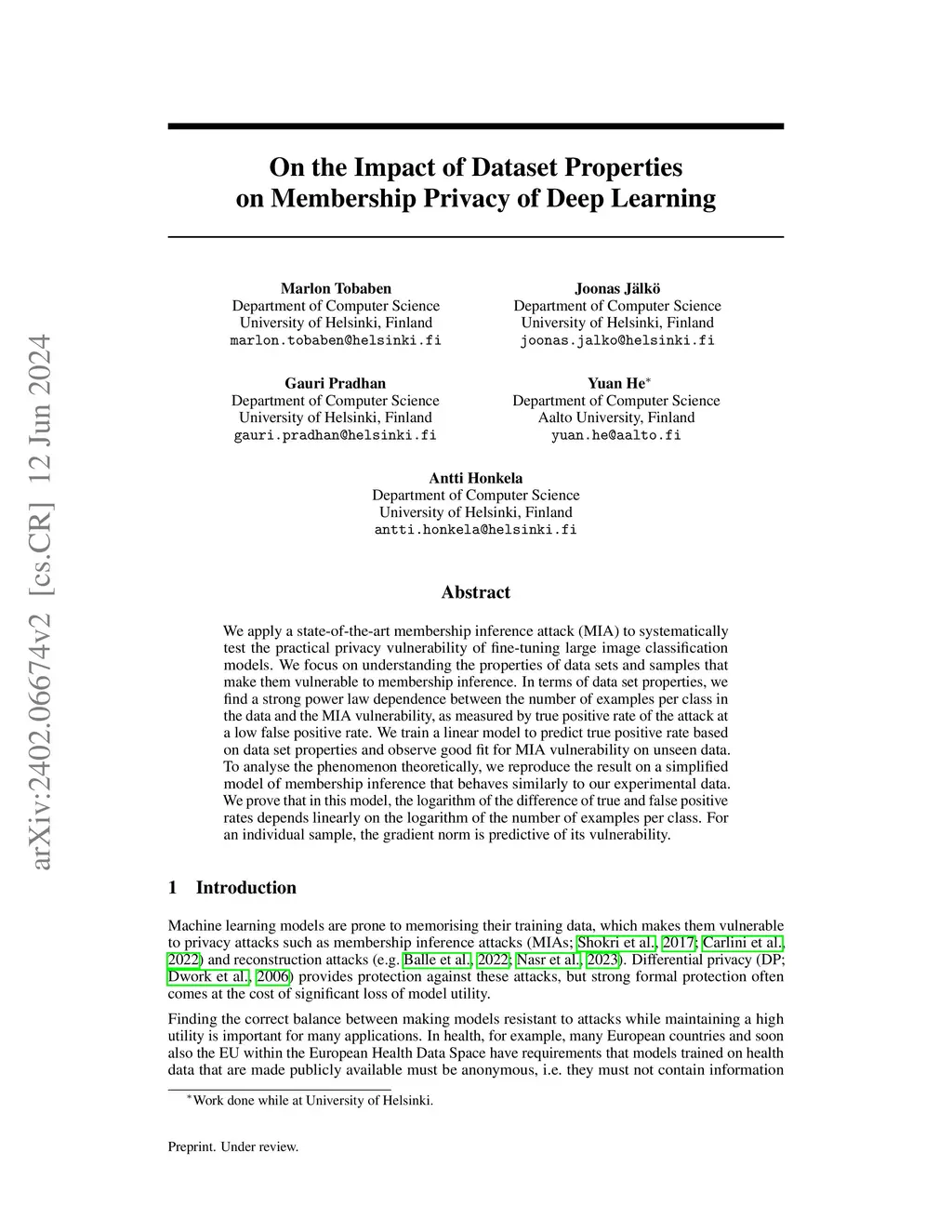Impact of Dataset Properties on Membership Inference Vulnerability of Deep Transfer Learning