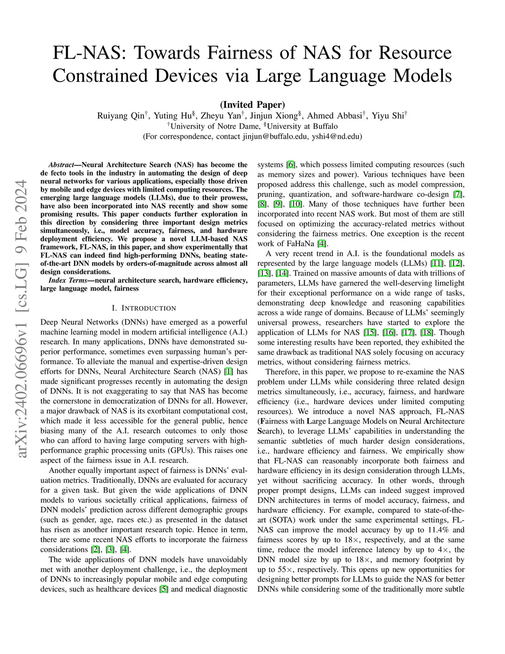 Neural Architecture Search (NAS) has become the de fecto tools in the industry in automating the design of deep neural networks for various applications, especially those driven by mobile and edge devices with limited computing resources. The emerging large language models (LLMs), due to their prowess, have also been incorporated into NAS recently and show some promising results. This paper conducts further exploration in this direction by considering three important design metrics simultaneously, i.e., model accuracy, fairness, and hardware deployment efficiency. We propose a novel LLM-based NAS framework, FL-NAS, in this paper, and show experimentally that FL-NAS can indeed find high-performing DNNs, beating state-of-the-art DNN models by orders-of-magnitude across almost all design considerations.