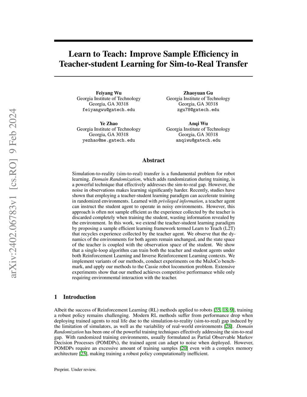 Humanoid robots promise transformative capabilities for industrial and service applications. While recent advances in Reinforcement Learning (RL) yield impressive results in locomotion, manipulation, and navigation, the proposed methods typically require enormous simulation samples to account for real-world variability. This work proposes a novel one-stage training framework-Learn to Teach (L2T)-which unifies teacher and student policy learning. Our approach recycles simulator samples and synchronizes the learning trajectories through shared dynamics, significantly reducing sample complexities and training time while achieving state-of-the-art performance. Furthermore, we validate the RL variant (L2T-RL) through extensive simulations and hardware tests on the Digit robot, demonstrating zero-shot sim-to-real transfer and robust performance over 12+ challenging terrains without depth estimation modules.