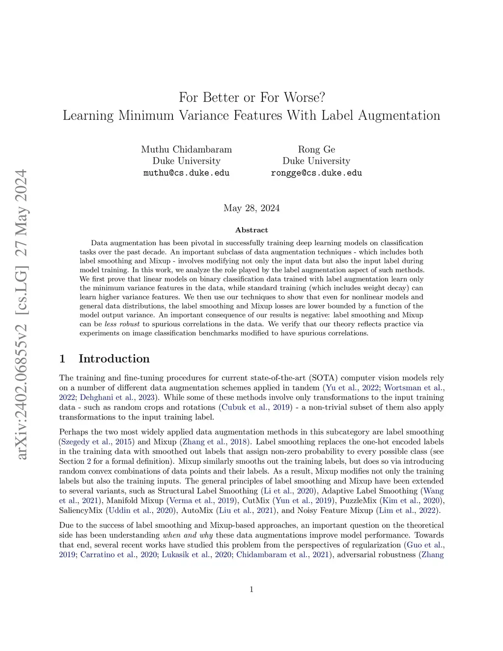 For Better or For Worse? Learning Minimum Variance Features With Label Augmentation