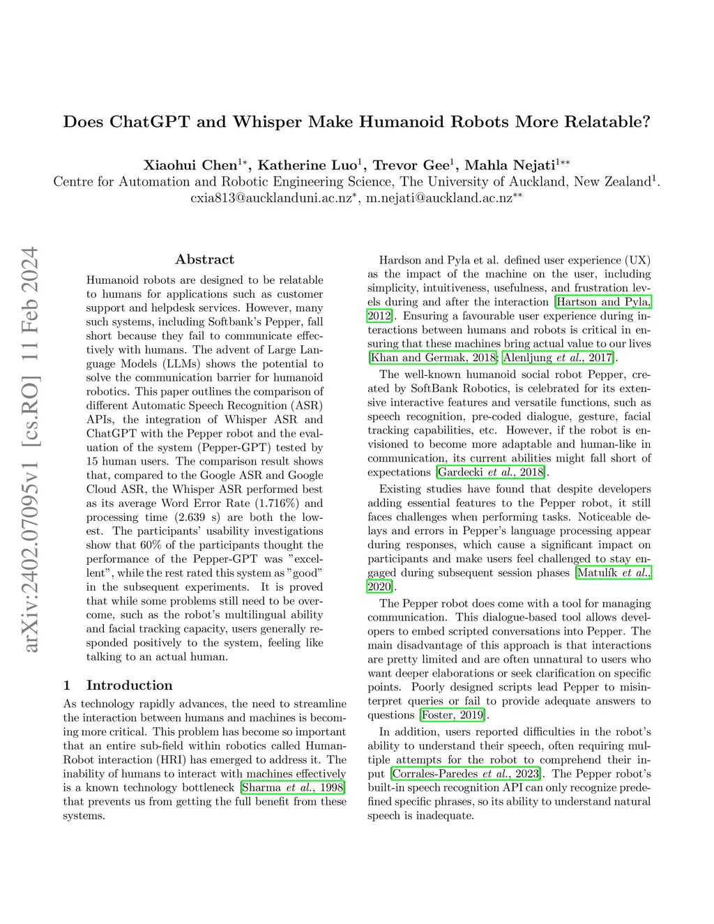 Does ChatGPT and Whisper Make Humanoid Robots More Relatable?