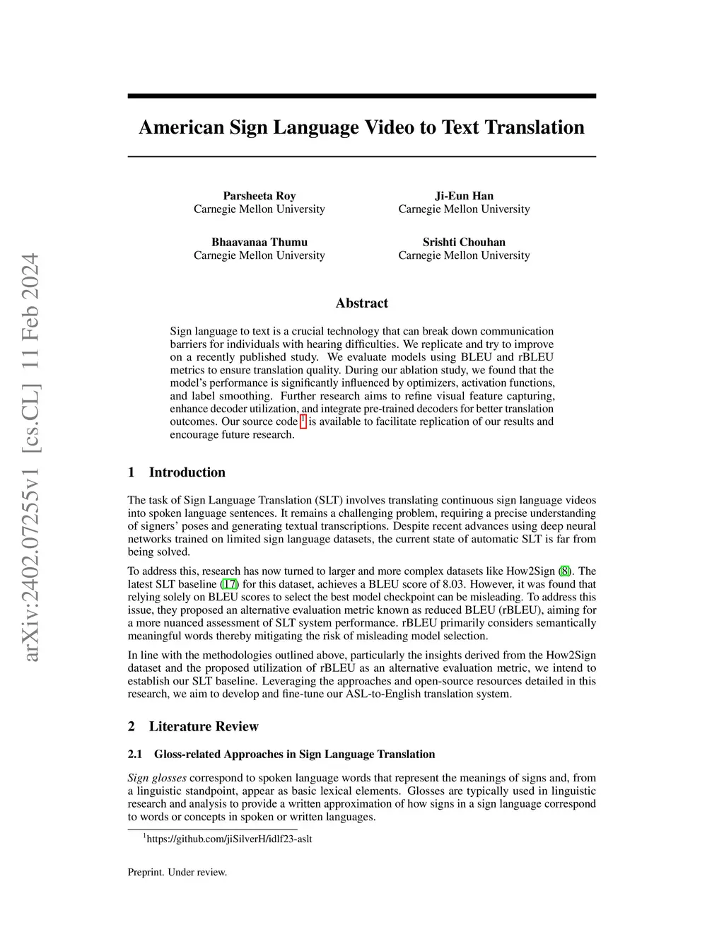 Sign language to text is a crucial technology that can break down communication barriers for individuals with hearing difficulties. We replicate and try to improve on a recently published study. We evaluate models using BLEU and rBLEU metrics to ensure translation quality. During our ablation study, we found that the model's performance is significantly influenced by optimizers, activation functions, and label smoothing. Further research aims to refine visual feature capturing, enhance decoder utilization, and integrate pre-trained decoders for better translation outcomes. Our source code is available to facilitate replication of our results and encourage future research.