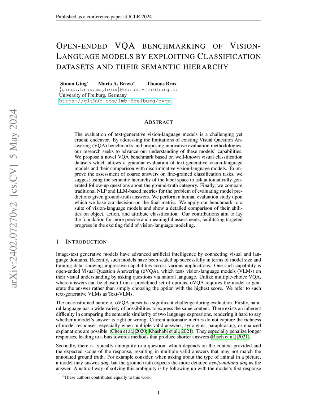Open-ended VQA benchmarking of Vision-Language models by exploiting