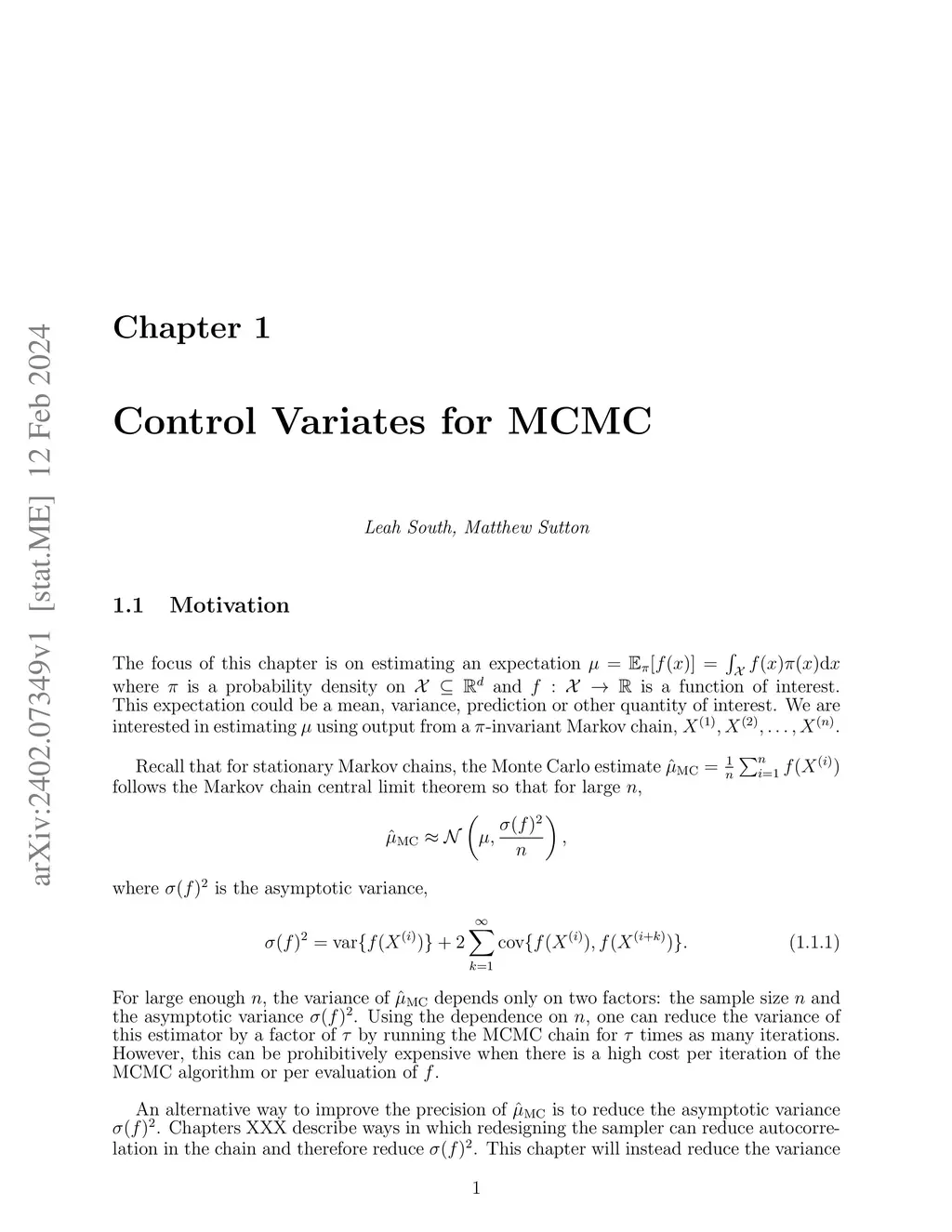 This chapter describes several control variate methods for improving estimates of expectations from MCMC.