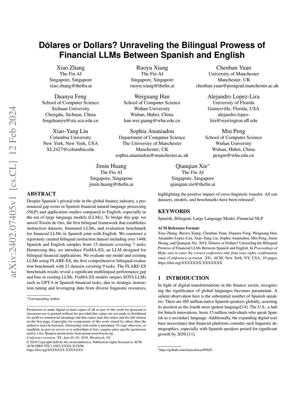 Dólares or Dollars? Unraveling the Bilingual Prowess of Financial LLMs