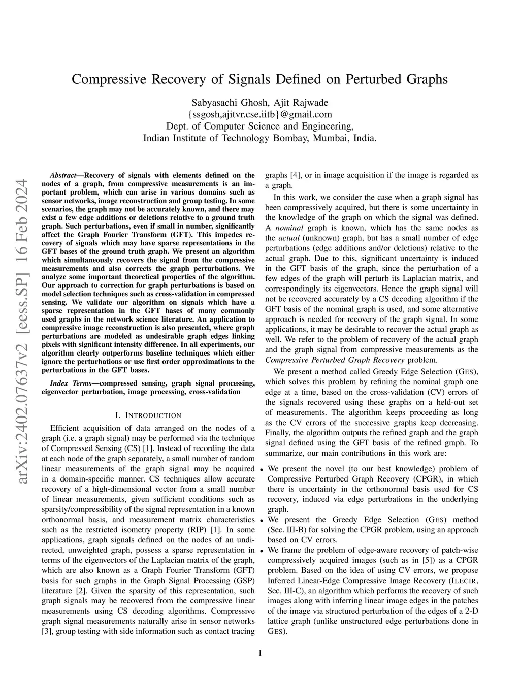 Recovery of signals with elements defined on the nodes of a graph, from compressive measurements is an important problem, which can arise in various domains such as sensor networks, image reconstruction and group testing. In some scenarios, the graph may not be accurately known, and there may exist a few edge additions or deletions relative to a ground truth graph. Such perturbations, even if small in number, significantly affect the Graph Fourier Transform (GFT). This impedes recovery of signals which may have sparse representations in the GFT bases of the ground truth graph. We present an algorithm which simultaneously recovers the signal from the compressive measurements and also corrects the graph perturbations. We analyze some important theoretical properties of the algorithm. Our approach to correction for graph perturbations is based on model selection techniques such as cross-validation in compressed sensing. We validate our algorithm on signals which have a sparse representation in the GFT bases of many commonly used graphs in the network science literature. An application to compressive image reconstruction is also presented, where graph perturbations are modeled as undesirable graph edges linking pixels with significant intensity difference. In all experiments, our algorithm clearly outperforms baseline techniques which either ignore the perturbations or use first order approximations to the perturbations in the GFT bases.