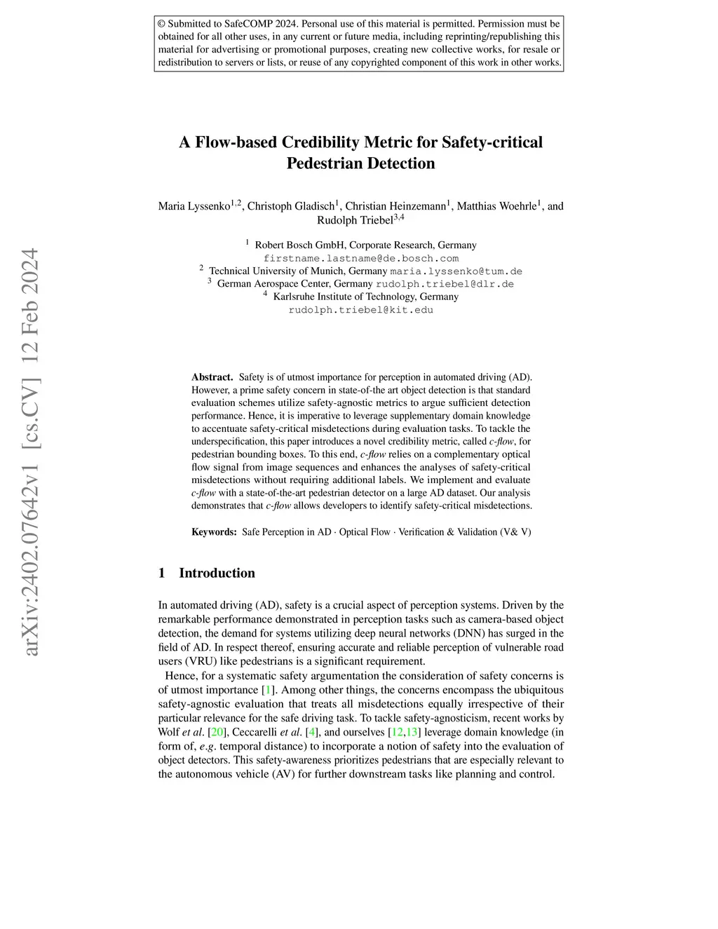 A Flow-based Credibility Metric for Safety-critical Pedestrian Detection