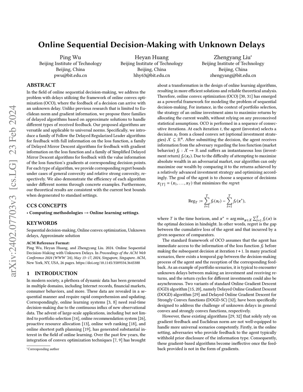 In the field of online sequential decision-making, we address the problem with delays utilizing the framework of online convex optimization (OCO), where the feedback of a decision can arrive with an unknown delay. Unlike previous research that is limited to Euclidean norm and gradient information, we propose three families of delayed algorithms based on approximate solutions to handle different types of received feedback. Our proposed algorithms are versatile and applicable to universal norms. Specifically, we introduce a family of Follow the Delayed Regularized Leader algorithms for feedback with full information on the loss function, a family of Delayed Mirror Descent algorithms for feedback with gradient information on the loss function and a family of Simplified Delayed Mirror Descent algorithms for feedback with the value information of the loss function's gradients at corresponding decision points. For each type of algorithm, we provide corresponding regret bounds under cases of general convexity and relative strong convexity, respectively. We also demonstrate the efficiency of each algorithm under different norms through concrete examples. Furthermore, our theoretical results are consistent with the current best bounds when degenerated to standard settings.