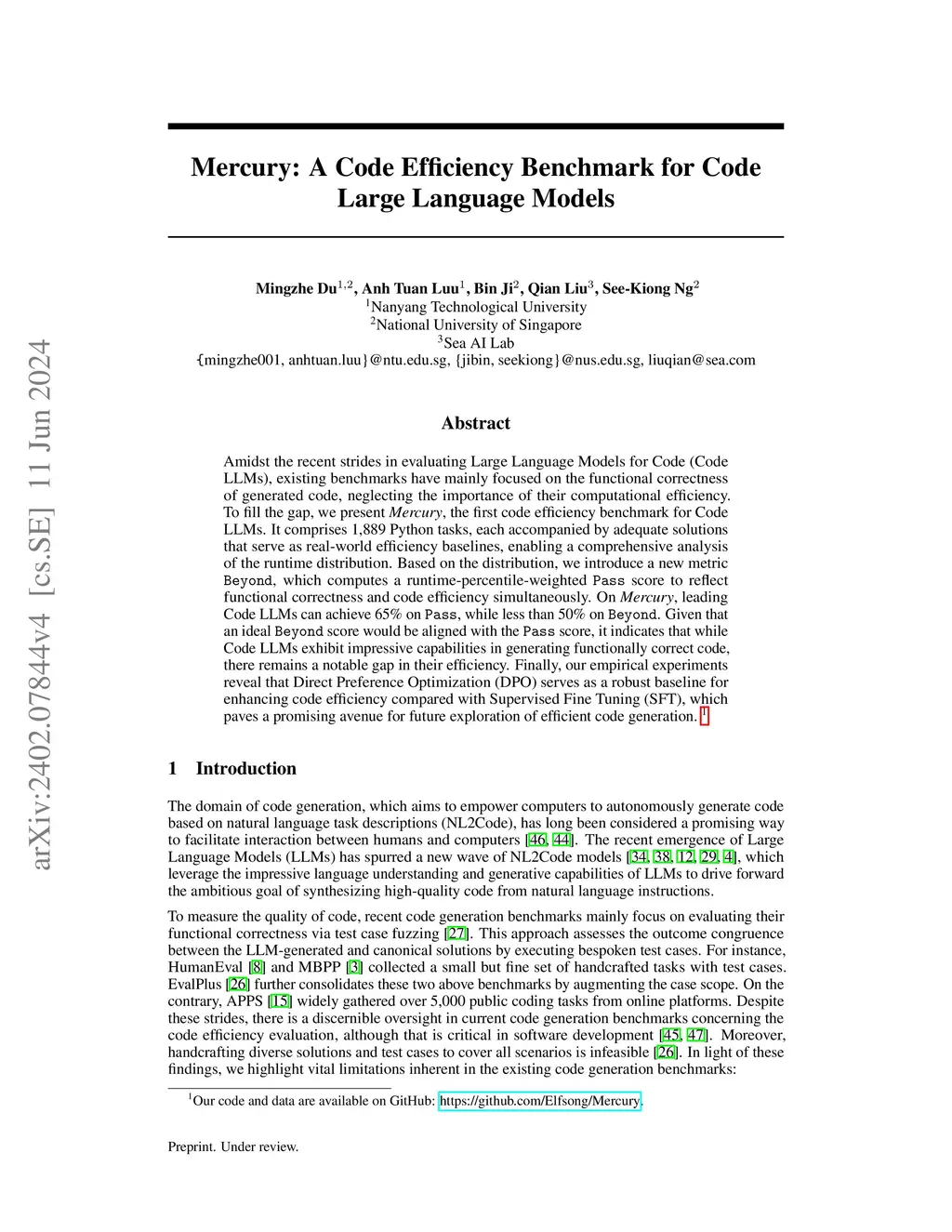Mercury: A Code Efficiency Benchmark for Code Large Language Models