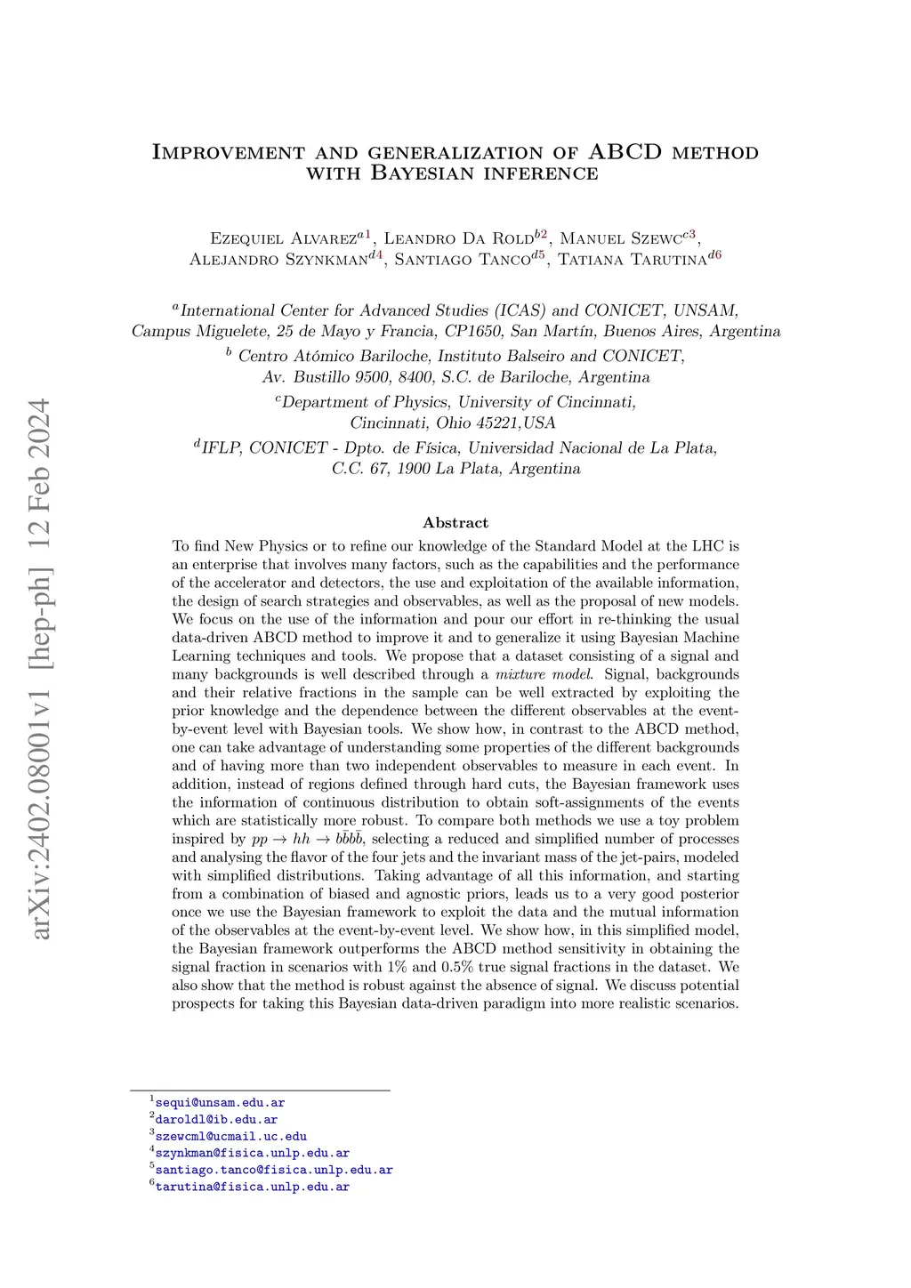 To find New Physics or to refine our knowledge of the Standard Model at the LHC is an enterprise that involves many factors. We focus on taking advantage of available information and pour our effort in re-thinking the usual data-driven ABCD method to improve it and to generalize it using Bayesian Machine Learning tools. We propose that a dataset consisting of a signal and many backgrounds is well described through a mixture model. Signal, backgrounds and their relative fractions in the sample can be well extracted by exploiting the prior knowledge and the dependence between the different observables at the event-by-event level with Bayesian tools. We show how, in contrast to the ABCD method, one can take advantage of understanding some properties of the different backgrounds and of having more than two independent observables to measure in each event. In addition, instead of regions defined through hard cuts, the Bayesian framework uses the information of continuous distribution to obtain soft-assignments of the events which are statistically more robust. To compare both methods we use a toy problem inspired by , selecting a reduced and simplified number of processes and analysing the flavor of the four jets and the invariant mass of the jet-pairs, modeled with simplified distributions. Taking advantage of all this information, and starting from a combination of biased and agnostic priors, leads us to a very good posterior once we use the Bayesian framework to exploit the data and the mutual information of the observables at the event-by-event level. We show how, in this simplified model, the Bayesian framework outperforms the ABCD method sensitivity in obtaining the signal fraction in scenarios with and true signal fractions in the dataset. We also show that the method is robust against the absence of signal.