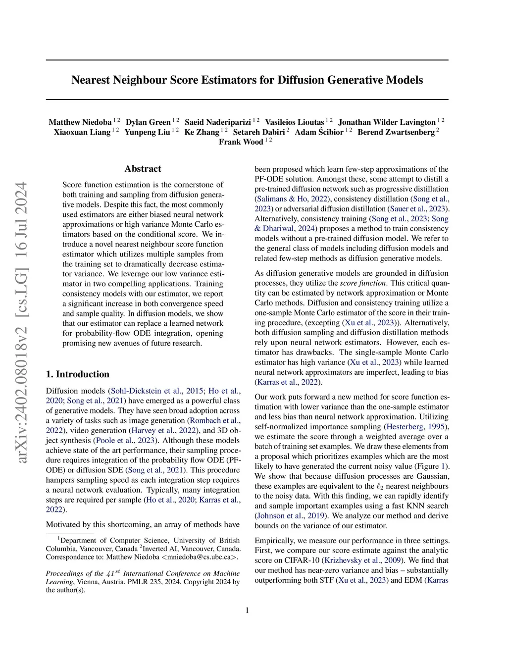 Score function estimation is the cornerstone of both training and sampling from diffusion generative models. Despite this fact, the most commonly used estimators are either biased neural network approximations or high variance Monte Carlo estimators based on the conditional score. We introduce a novel nearest neighbour score function estimator which utilizes multiple samples from the training set to dramatically decrease estimator variance. We leverage our low variance estimator in two compelling applications. Training consistency models with our estimator, we report a significant increase in both convergence speed and sample quality. In diffusion models, we show that our estimator can replace a learned network for probability-flow ODE integration, opening promising new avenues of future research.
