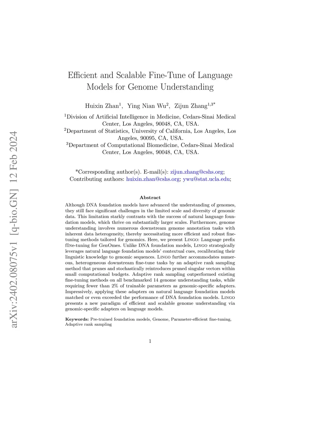 Efficient and Scalable Fine-Tune of Language Models for Genome