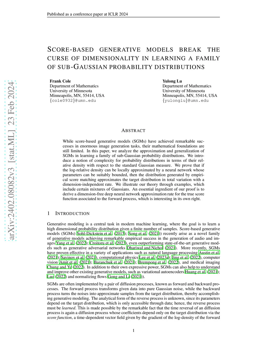 Score-based generative models break the curse of dimensionality in
