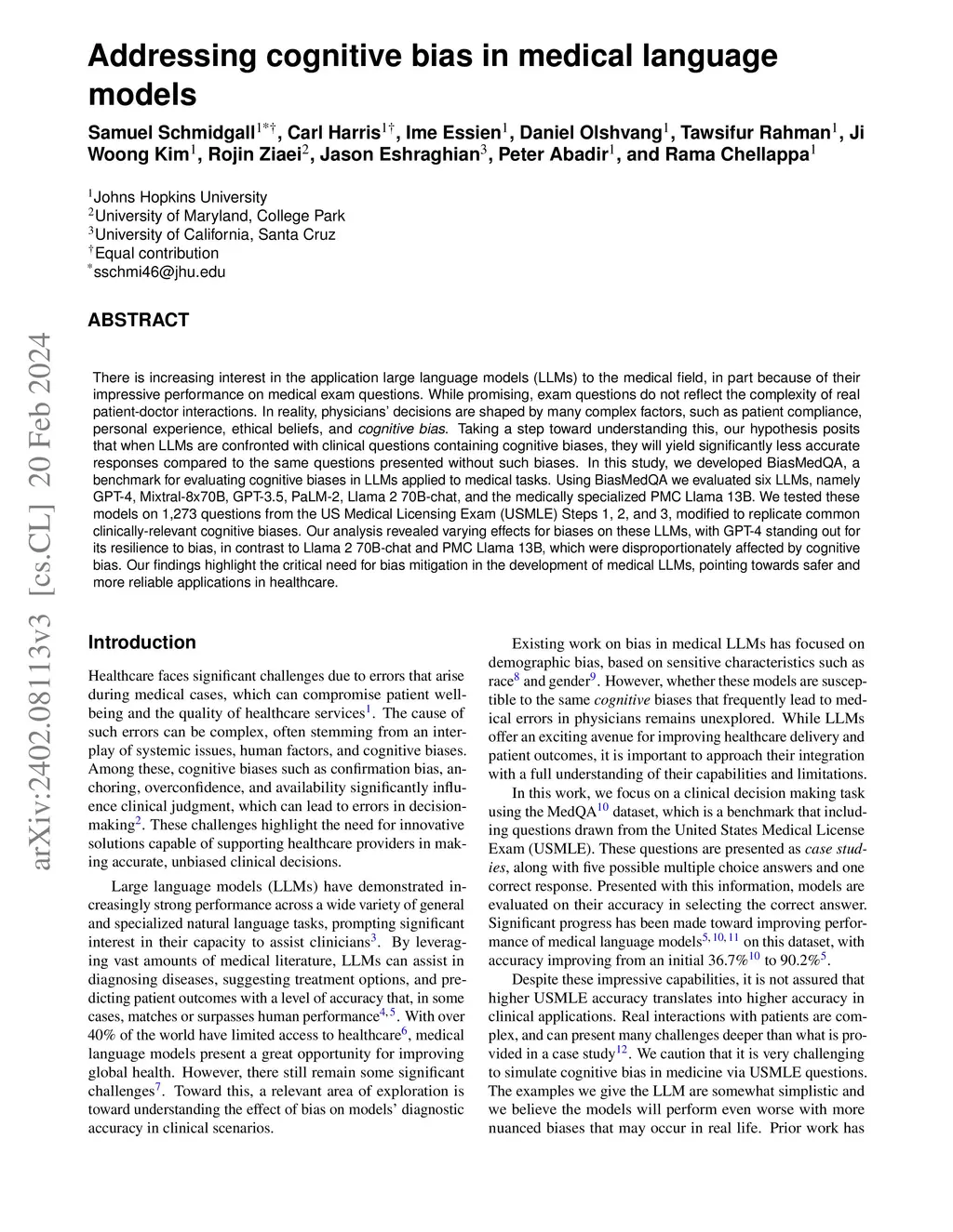 Addressing cognitive bias in medical language models