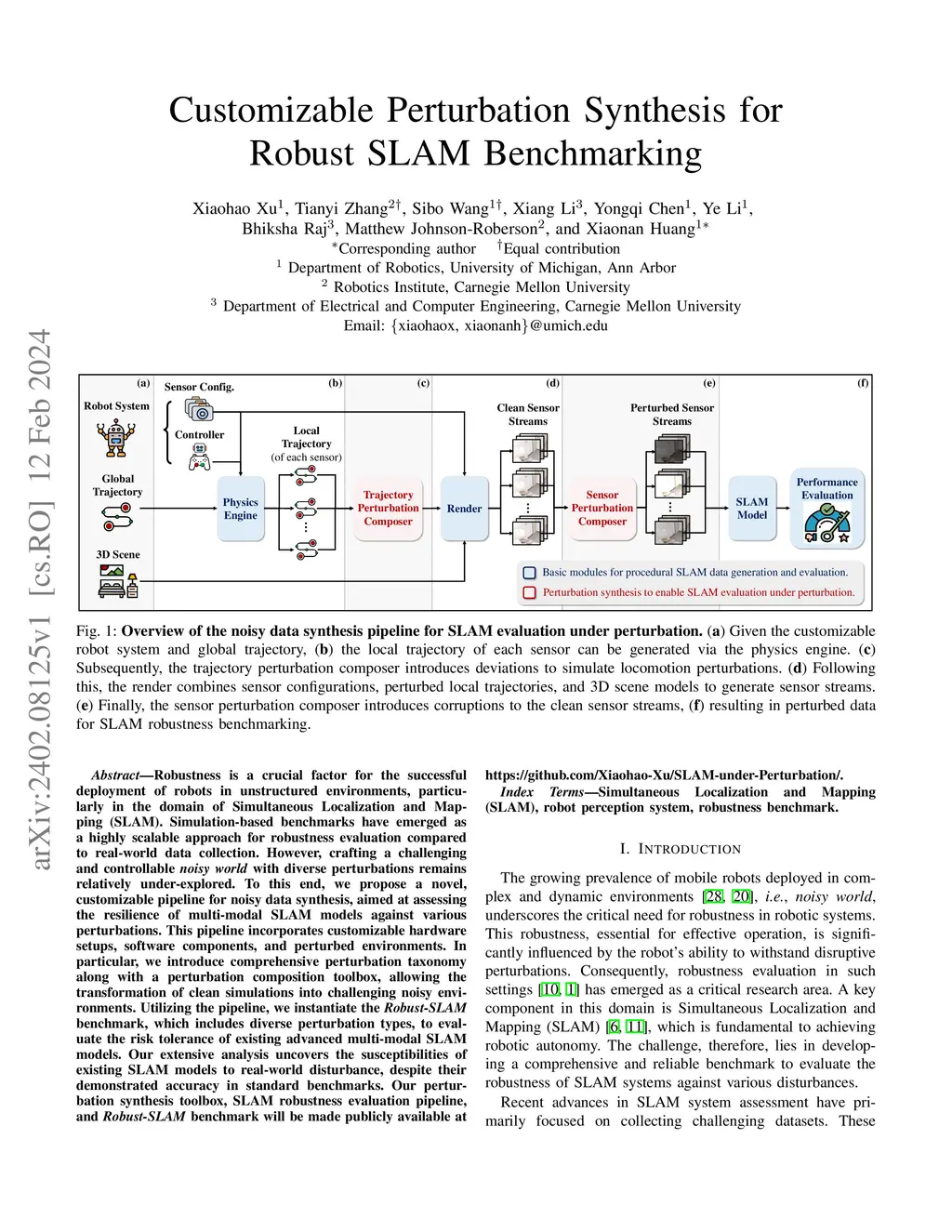 Customizable Perturbation Synthesis for Robust SLAM Benchmarking