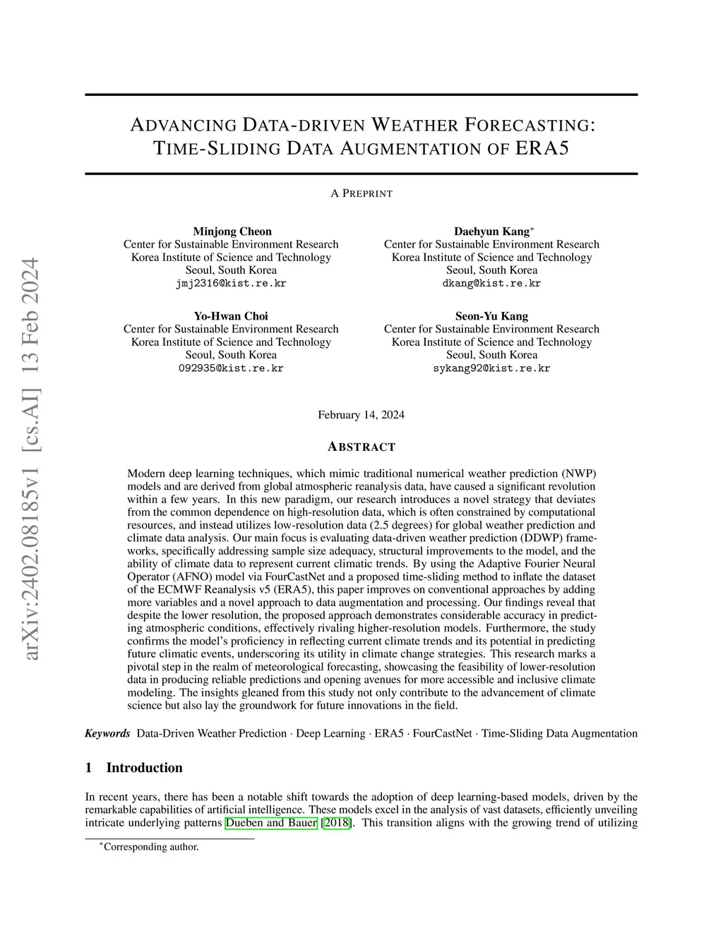 Modern deep learning techniques, which mimic traditional numerical weather prediction (NWP) models and are derived from global atmospheric reanalysis data, have caused a significant revolution within a few years. In this new paradigm, our research introduces a novel strategy that deviates from the common dependence on high-resolution data, which is often constrained by computational resources, and instead utilizes low-resolution data (2.5 degrees) for global weather prediction and climate data analysis. Our main focus is evaluating data-driven weather prediction (DDWP) frameworks, specifically addressing sample size adequacy, structural improvements to the model, and the ability of climate data to represent current climatic trends. By using the Adaptive Fourier Neural Operator (AFNO) model via FourCastNet and a proposed time-sliding method to inflate the dataset of the ECMWF Reanalysis v5 (ERA5), this paper improves on conventional approaches by adding more variables and a novel approach to data augmentation and processing. Our findings reveal that despite the lower resolution, the proposed approach demonstrates considerable accuracy in predicting atmospheric conditions, effectively rivaling higher-resolution models. Furthermore, the study confirms the model's proficiency in reflecting current climate trends and its potential in predicting future climatic events, underscoring its utility in climate change strategies. This research marks a pivotal step in the realm of meteorological forecasting, showcasing the feasibility of lower-resolution data in producing reliable predictions and opening avenues for more accessible and inclusive climate modeling. The insights gleaned from this study not only contribute to the advancement of climate science but also lay the groundwork for future innovations in the field.