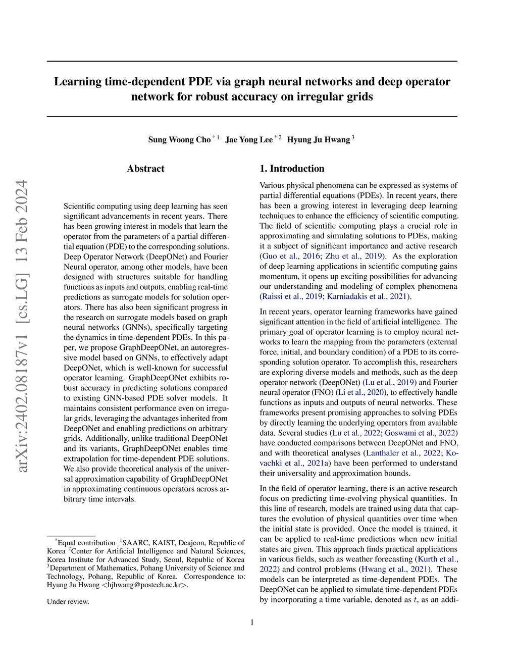 Scientific computing using deep learning has seen significant advancements in recent years. There has been growing interest in models that learn the operator from the parameters of a partial differential equation (PDE) to the corresponding solutions. Deep Operator Network (DeepONet) and Fourier Neural operator, among other models, have been designed with structures suitable for handling functions as inputs and outputs, enabling real-time predictions as surrogate models for solution operators. There has also been significant progress in the research on surrogate models based on graph neural networks (GNNs), specifically targeting the dynamics in time-dependent PDEs. In this paper, we propose GraphDeepONet, an autoregressive model based on GNNs, to effectively adapt DeepONet, which is well-known for successful operator learning. GraphDeepONet exhibits robust accuracy in predicting solutions compared to existing GNN-based PDE solver models. It maintains consistent performance even on irregular grids, leveraging the advantages inherited from DeepONet and enabling predictions on arbitrary grids. Additionally, unlike traditional DeepONet and its variants, GraphDeepONet enables time extrapolation for time-dependent PDE solutions. We also provide theoretical analysis of the universal approximation capability of GraphDeepONet in approximating continuous operators across arbitrary time intervals.