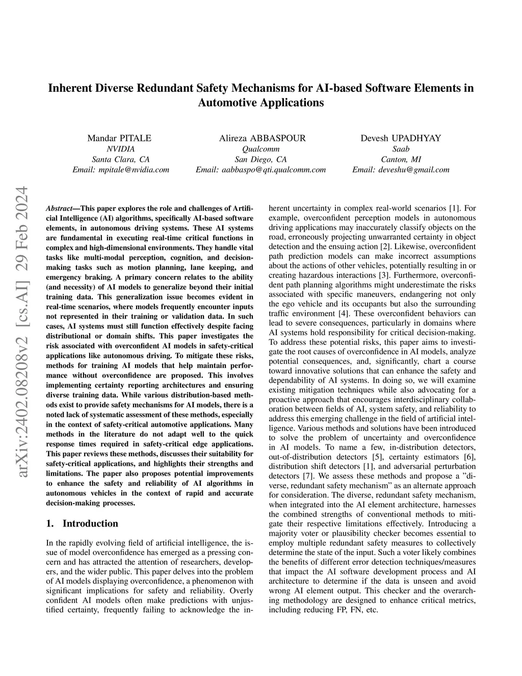 Inherent Diverse Redundant Safety Mechanisms for AI-based Software