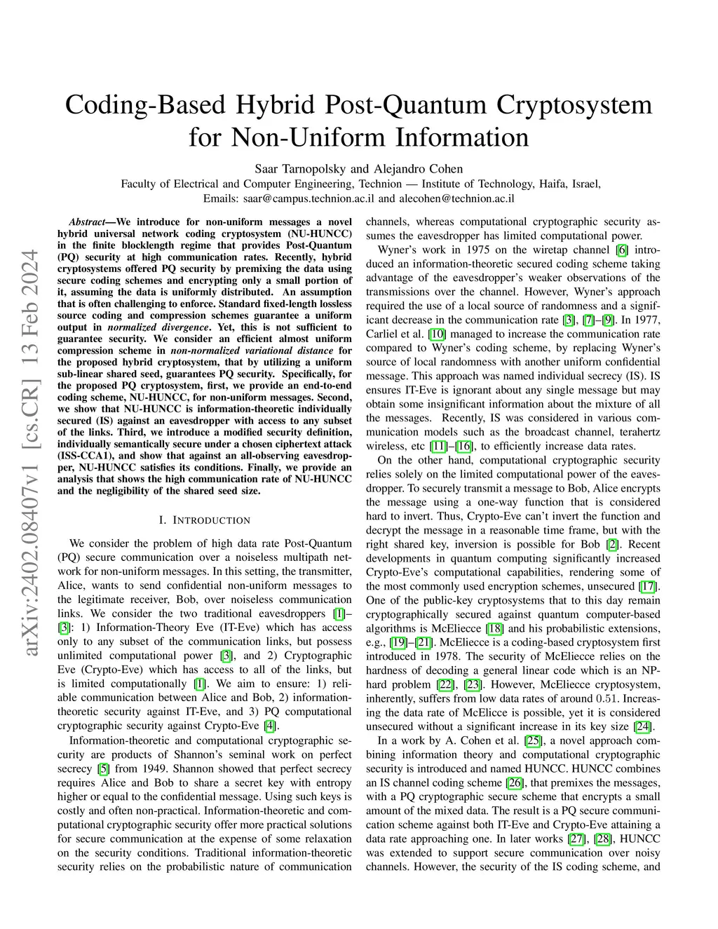 Coding-Based Hybrid Post-Quantum Cryptosystem for Non-Uniform