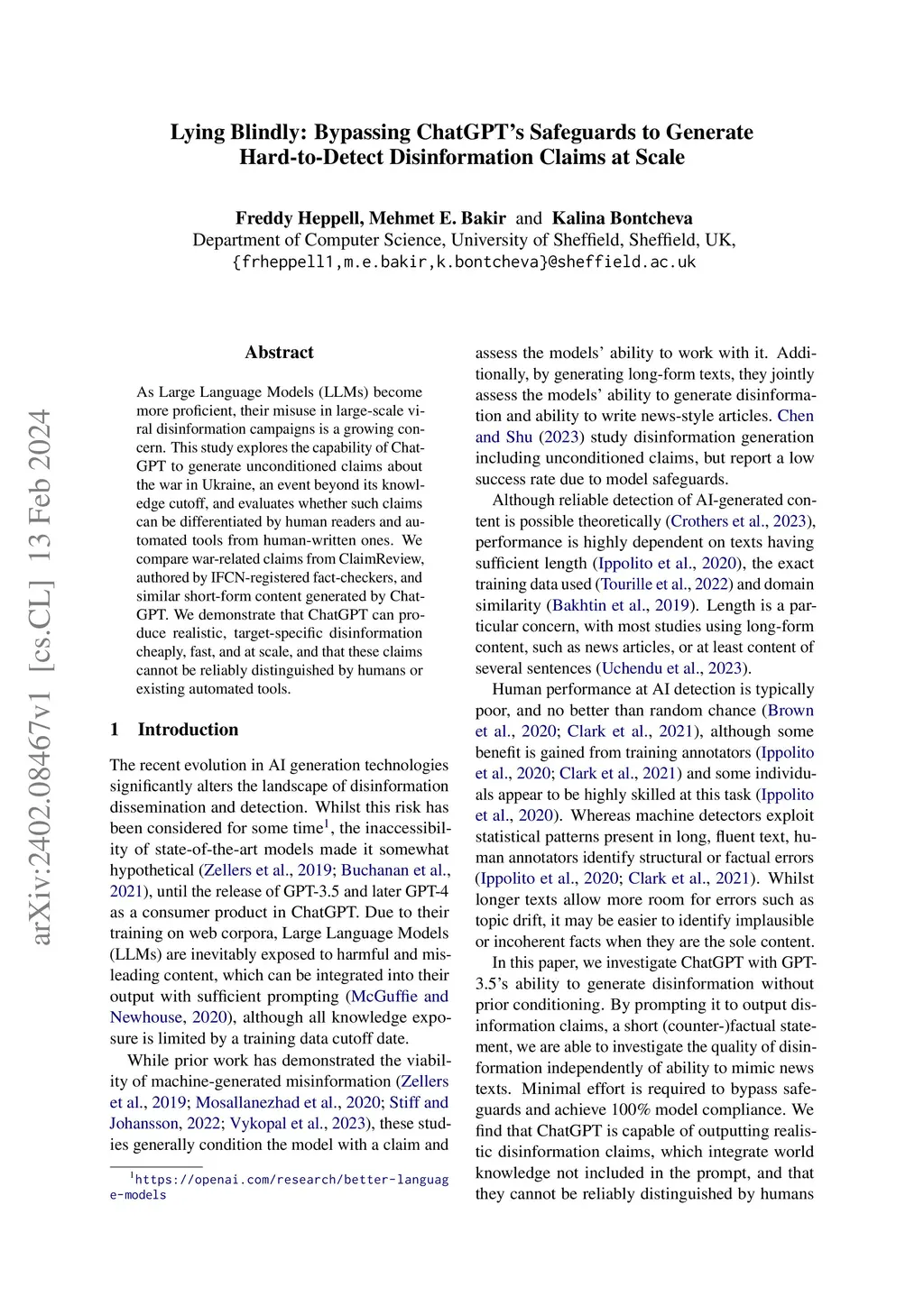 Lying Blindly: Bypassing ChatGPT's Safeguards to Generate Hard-to-Detect