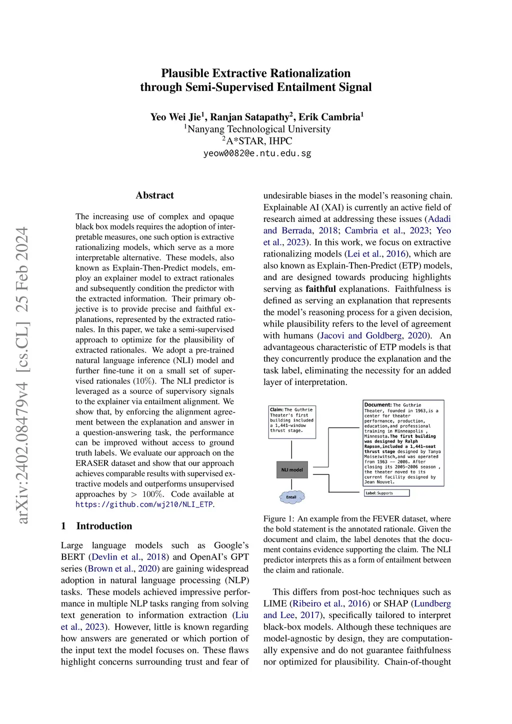 Plausible Extractive Rationalization through Semi-Supervised Entailment